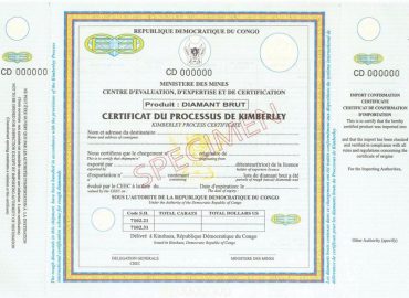 Le processus de Kimberley en République démocratique du Congo est assuré par le C.E.E.C qui controle, teste et Certifie les pièrres. Pour traquer l’authenticité de nos Certificats du Processus de Kimberley: